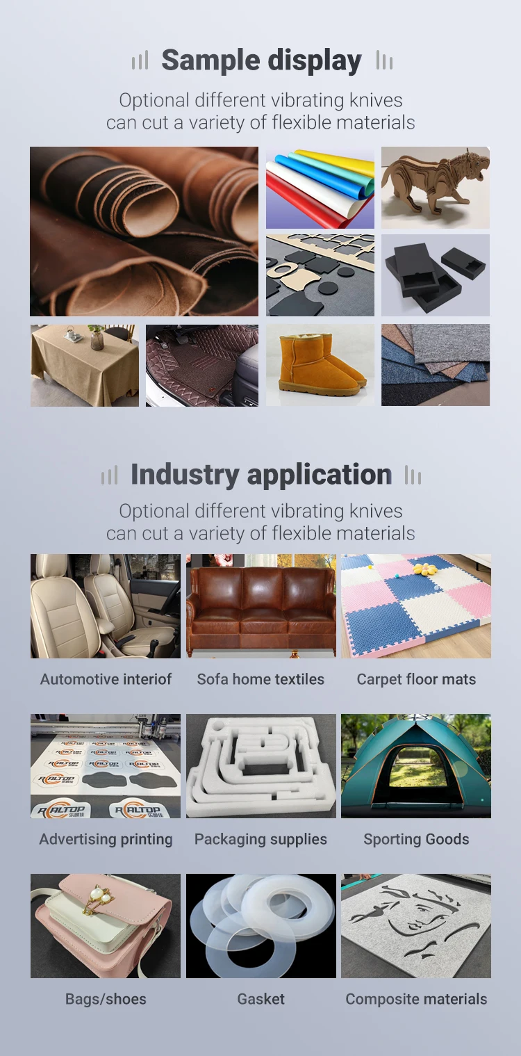 1: What professional advice can you give me when I need to buy REALTOP digital cutting machine?Please tell us what material you are cutting and the dimensions of the material (width and length). We will recommend a suitable model for you based on your material texture and size.If you can send us some trial cutting materials. we will record the cutting video for your reference. welcome to visit our company and factory if possible. 2: What materials can your machine cut?REALTOP digital cutting machine can cut different kinds of soft materials. Used in different industries such as shoes. bags. clothing. cartons. composite materials. automobiles. and home furnishings.