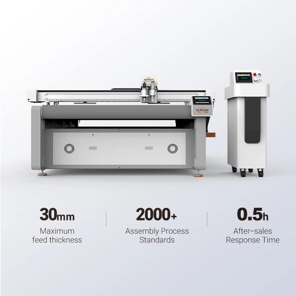 1: What professional advice can you give me when I need to buy REALTOP digital cutting machine?Please tell us what material you are cutting and the dimensions of the material (width and length). We will recommend a suitable model for you based on your material texture and size.If you can send us some trial cutting materials. we will record the cutting video for your reference. welcome to visit our company and factory if possible.