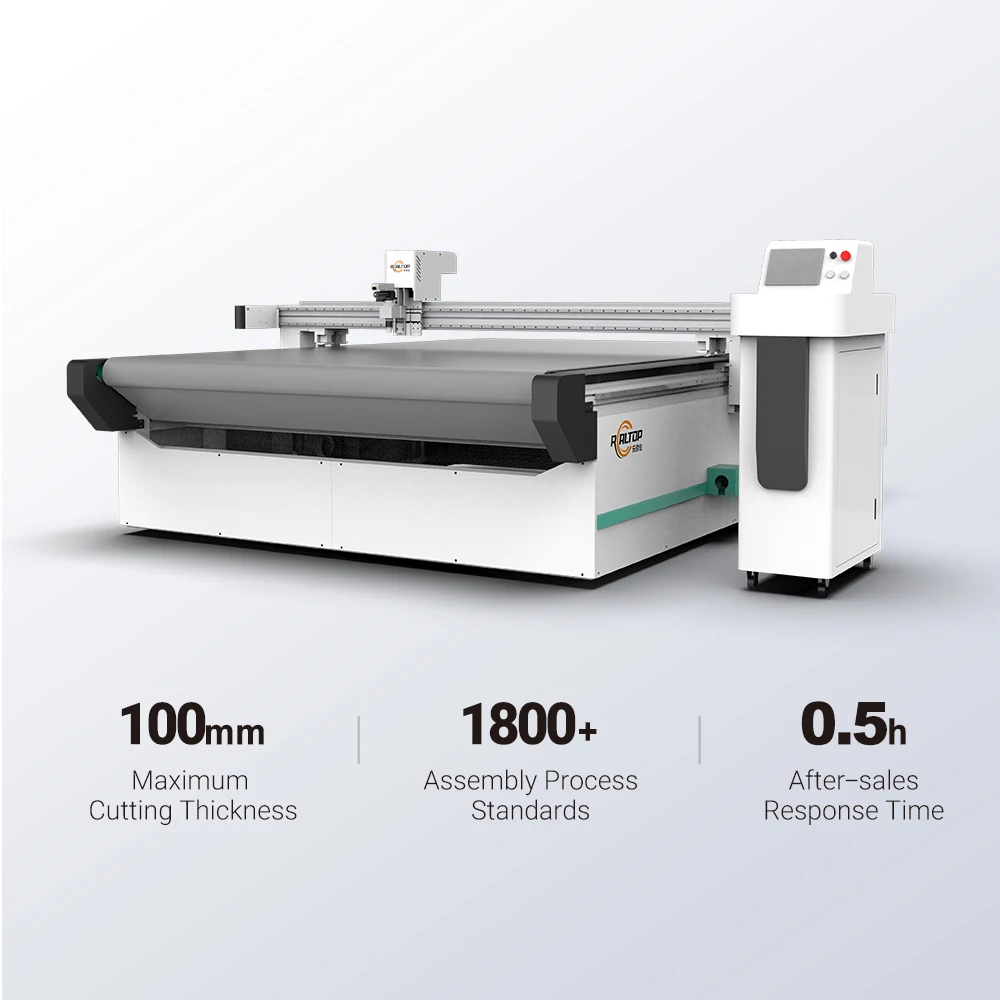 1: What professional advice can you give me when I need to buy REALTOP digital cutting machine?Please tell us what material you are cutting and the dimensions of the material (width and length). We will recommend a suitable model for you based on your material texture and size.If you can send us some trial cutting materials. we will record the cutting video for your reference. welcome to visit our company and factory if possible.