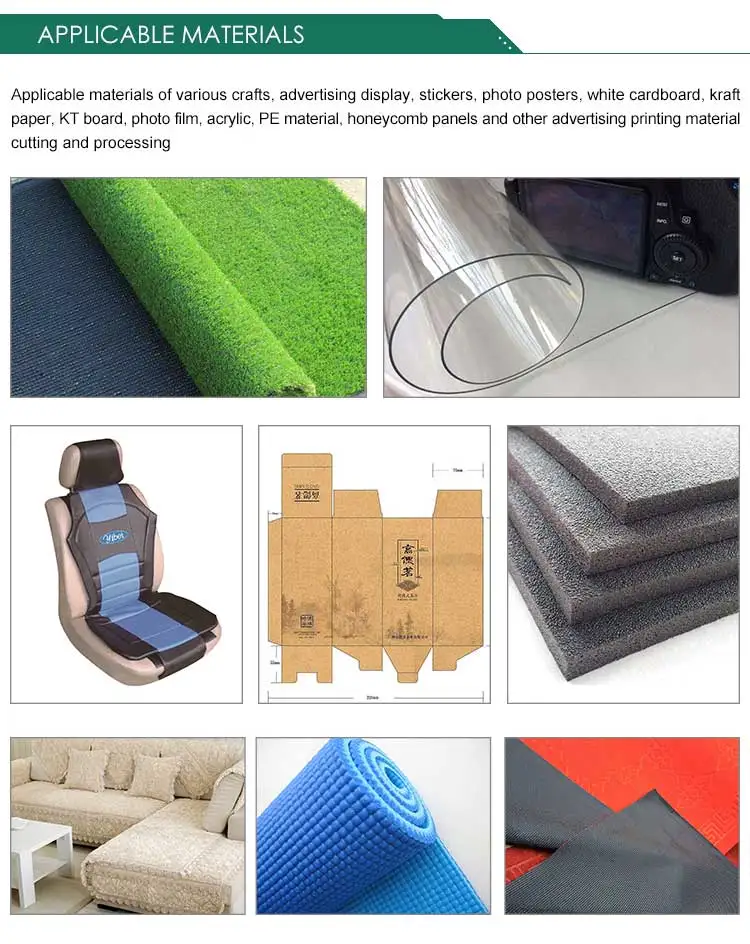 1.Digital cutting machines for leather. paper. stickers. foam. carpet and many other soft materials cutting;