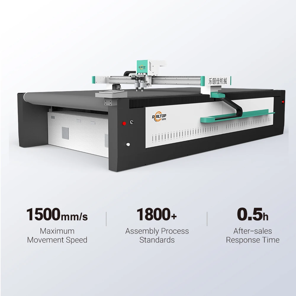 1: What professional advice can you give me when I need to buy REALTOP digital cutting machine?Please tell us what material you are cutting and the dimensions of the material (width and length). We will recommend a suitable model for you based on your material texture and size.If you can send us some trial cutting materials. we will record the cutting video for your reference. welcome to visit our company and factory if possible.