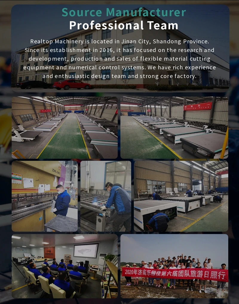 REALTOP CNC is a well-known CNC equipment manufacturer with more than 15 years machine production experience. We created "REALTOP" brand. and mainly engaged in the research and development. production. marketing and services of Oscillating Knife Digital Cutting Machine which is widely used for cutting soft materials. such as cardboard. corrugated paper. paper honeycomb.leather. glass fiber. carbon fiber. fabric. sticker. film. foam board. acrylic board. rubber. gasket material. garment cloth. footwear material. bags materials. non-woven fabrics. carpets. sponge. PU. EVA. XPE. PVC. PP. PE. PTFE. ETFE and composites.