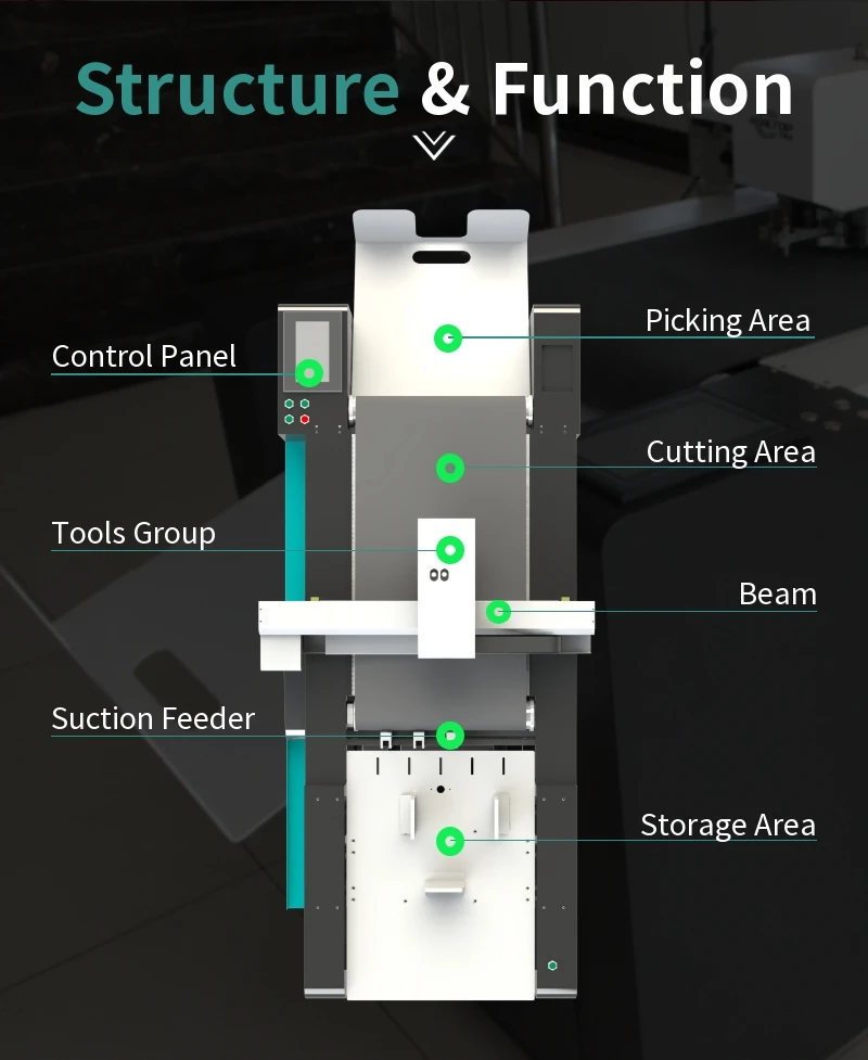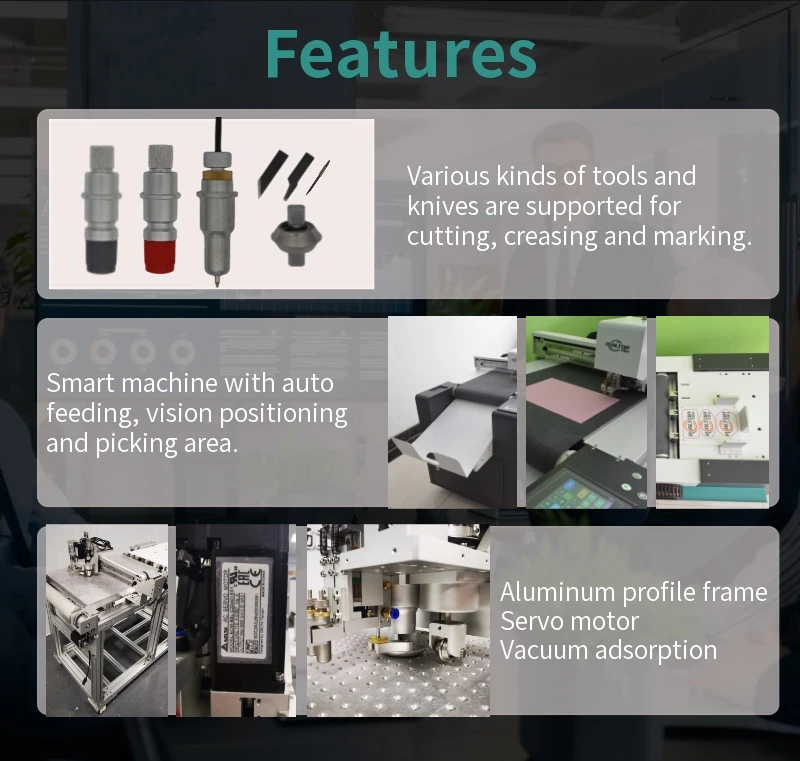 1. The machine is equipment with vibrating knife cutting technology. which saves the cost and time of manufacturing. management and storage of cutter. Farewell completely to the traditional manual cutting technology. completely break through the bottleneck of enterprises dependence on skilled workers. and take the lead in the era of digital tool-free die processing.