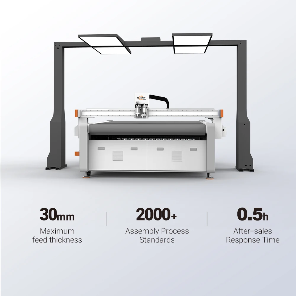 1: What professional advice can you give me when I need to buy REALTOP digital cutting machine?Please tell us what material you are cutting and the dimensions of the material (width and length). We will recommend a suitable model for you based on your material texture and size.If you can send us some trial cutting materials. we will record the cutting video for your reference. welcome to visit our company and factory if possible.