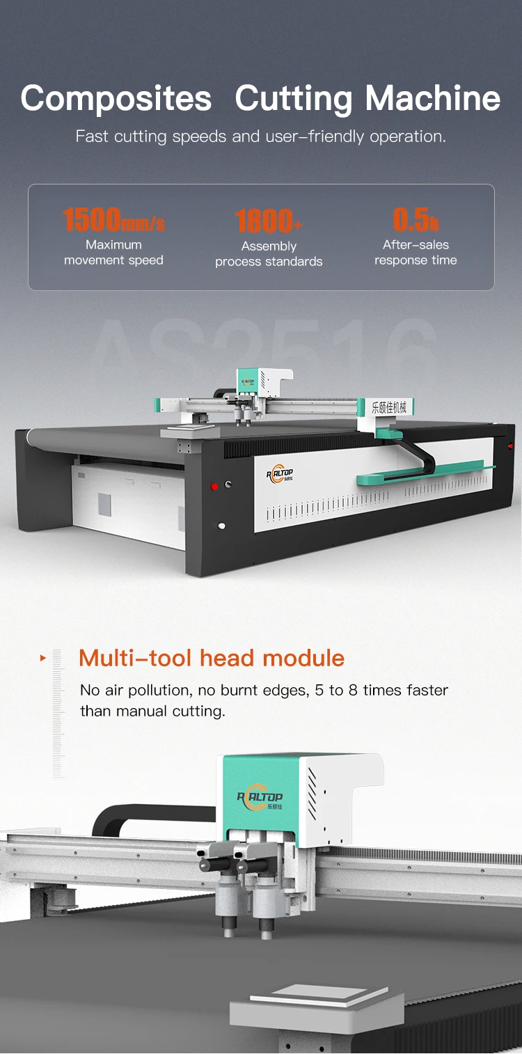 1: What professional advice can you give me when I need to buy REALTOP digital cutting machine?Please tell us what material you are cutting and the dimensions of the material (width and length). We will recommend a suitable model for you based on your material texture and size.If you can send us some trial cutting materials. we will record the cutting video for your reference. welcome to visit our company and factory if possible.