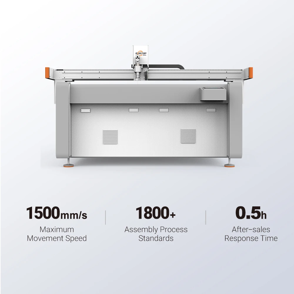 1: What professional advice can you give me when I need to buy REALTOP digital cutting machine?Please tell us what material you are cutting and the dimensions of the material (width and length). We will recommend a suitable model for you based on your material texture and size.If you can send us some trial cutting materials. we will record the cutting video for your reference. welcome to visit our company and factory if possible.