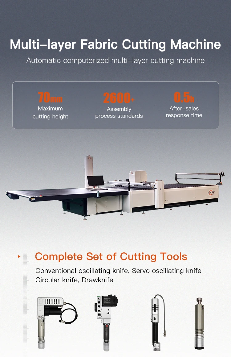1 . Significantly Enhanced Cutting Efficiency✳Cutting speeds reach 12m/MIN. boosting productivity to 5–6 times that of manual cutting.✳Supports multi-layer cutting (up to 70mm after adsorption). drastically reducing repetitive operations.